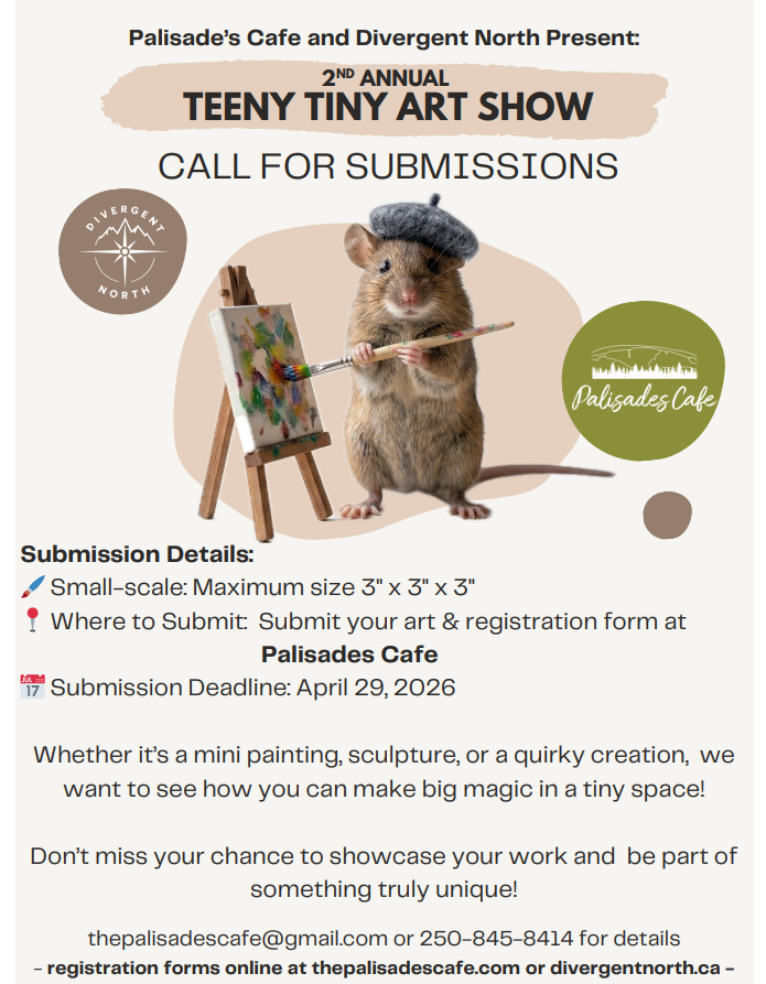 We celebrate all things small & mighty! Whether it’s a teeny tiny painting, an itsy bitsy sculpture, or a quirky creation, we want to celebrate it here at Palisade’s Cafe! A huge shout-out to Divergent North for collaborating with us on such a fun project here in Houston BC.